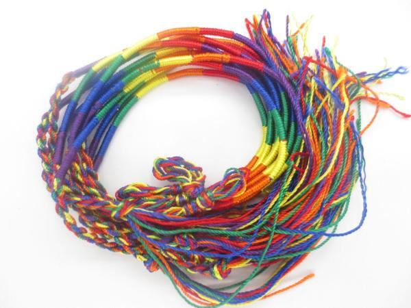 Handgefertigte und sehr fröhlich gefärbte hochwertige Glücks,- oder Freundschaftsarmbänder in regenbogenfarben.